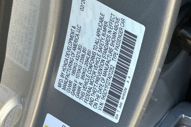 - VIN : 1HGCY1F22TA012252