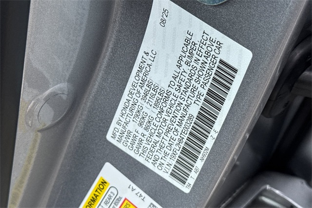 - VIN : 19XFL2H84TE003289