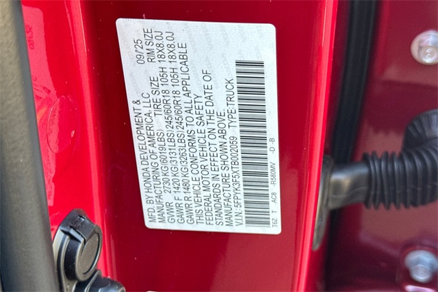 - VIN : 5FPYK3F5XTB002059