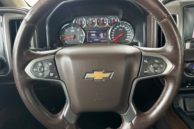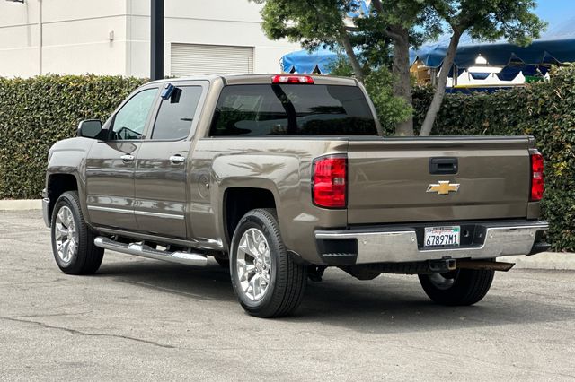 2014 Chevrolet Silverado 1500 LTZ Crew Cab with 4WD. It's powered by the dependable 355HP 5.3L V8 with Flex Fuel capability and the AutoTrac 4 wheel drive system with a locking rear differential. It's Brownstone Metallic with Cocoa/Dune Leather trim. There are power front seats, a premium sound system, navigation, backup camera with parking sensors, running boards, dual zone climate control,. There's the trailer package with tow hitch receiver and a trailer brake controller. chrome alloy wheels, and much more.