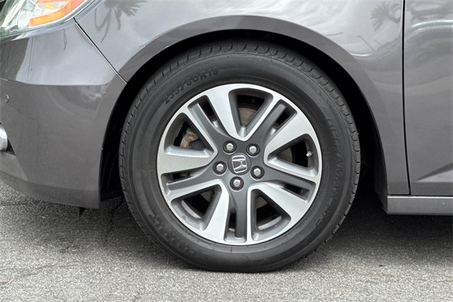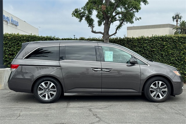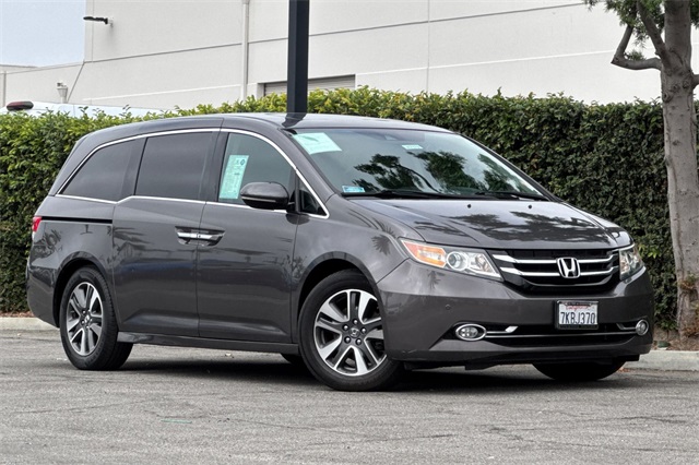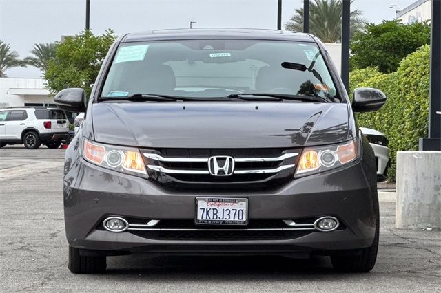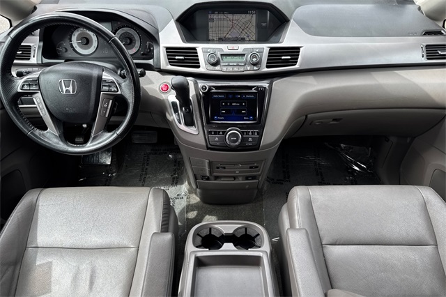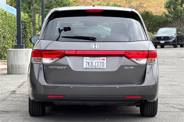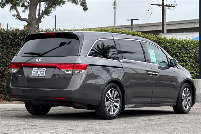 Certified. Gray 2015 Honda Odyssey Touring Elite powered by a 3.5L V6. It's loaded with heated and powered leather seats, a power moonroof and tailgate, premium audio with navigation, a backup camera, three zone climate control, sunshades for the rear windows in addition to the dark privacy glass, smart entry keys with push button starting, and much more.