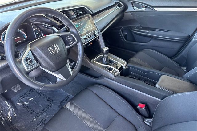 SAVE THE MANUALS !!!! True Used . 2018 Honda Civic EX-T in White Orchid Pearl. It's powered by a 1.5L DOHC Turbocharged engine, with a hard to find 6-speed manual transmission. Outside it's equipped with Black alloy wheels, fog lamps, and a rear spoiler. Inside it's got black trim, the driver's seat is power adjustable, both front seats are heated, the touch screen AM/FM/HD/XM audio system has got Apple Carplay and Android auto capability. There is also cruise control, ABS brakes with Brake Assist, push button starting, a 3-view backup camera and a lane watch camera, power moonroof, and much more.