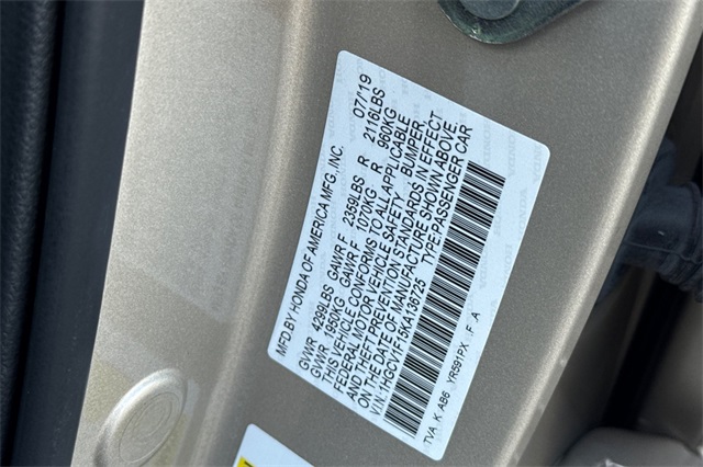 - VIN : 1HGCV1F15KA136725