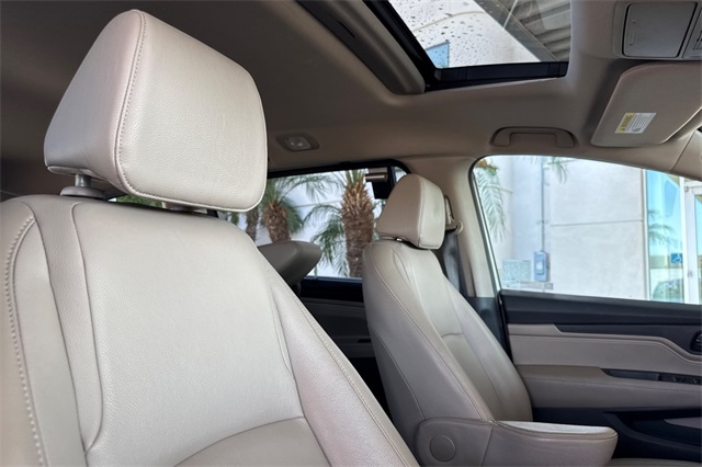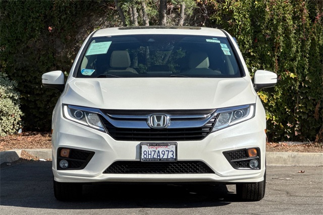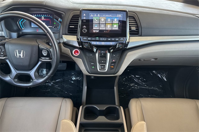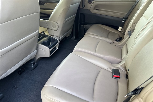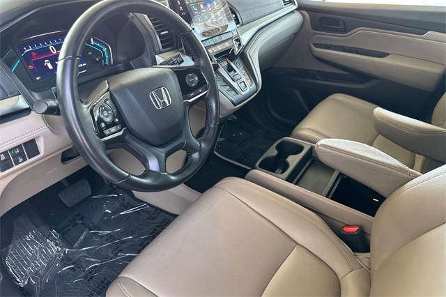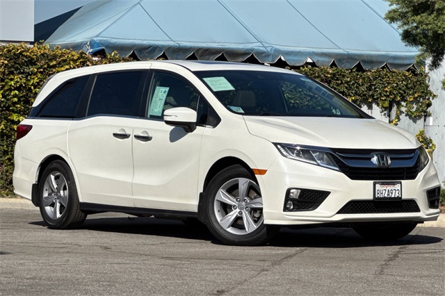 Certified. 2019 Honda Odyssey EX-L It's powered by a 3.5L i-VTEC V6 SOHC with a 9-Speed Automatic. It's White Diamond Pearl with Beige leather (for easy cleanup of spills) heated and powered front seats. This "mini"-van is great for your family with seating for up to 8 people. The 3rd row seat will fold into the rear floor area and the 2nd row has a removable center seat. It's equipped with safety features like the blind spot info system, adaptive cruise control, lane keeping assist, forward collision warning & braking, a 3-view backup camera with rear cross traffic alert, side curtain airbags for all three rows, and much more. It has conveniences like power sliding side doors & tailgate, 3-zone automatic climate control, Apple Carplay and Android Auto capability, dark privacy glass and remote starting for hot days, 15 cupholders, and so much more.