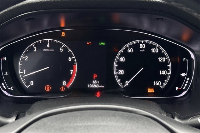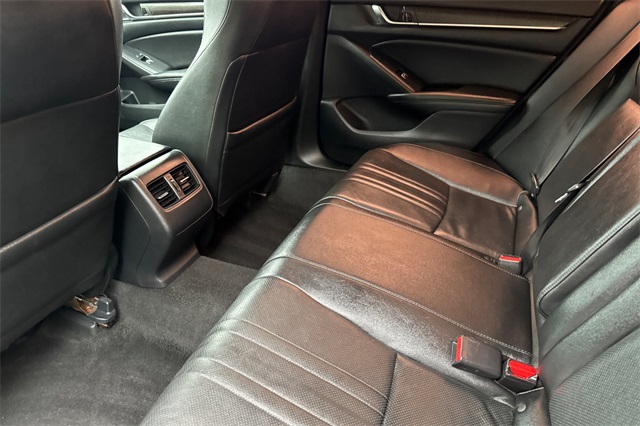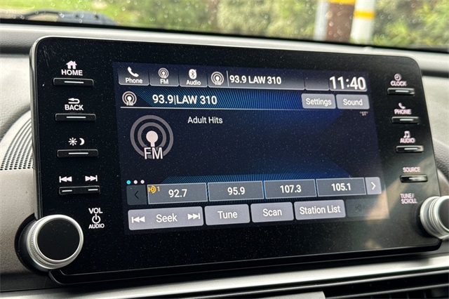 True Used. 2020 Honda Accord EX-L sedan in Modern Steel Metallic. It's powered by a 1.5L DOHC Turbo engine. This model is loaded with safety features like the blind spot information system, adaptive cruise control with low speed follow, forward collision warning & braking, lane keeping assist, and a 3-view backup camera with rear cross traffic alert. It's got conveniences like wireless Apple Carplay and Android auto capability along with wireless phone charging, for its 450 watt premium audio system with satellite and HD radio, bluetooth for handsfree phone operation for your music or podcasts, dual zone front climate control with rear seat A/C vents and USB power ports too. The leather trimmed seats are heated and powered, the driver's side has 10-way power adjustment with a two position memory. It's also got remote starting, walk-away auto locking, a power moonroof auto dimming rear view mirror with Homelink garage and gate openers, alloy wheels, LED head lights and fog lamps,