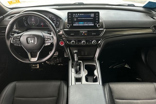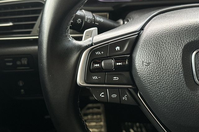 True Used.2020 Honda Accord Sport. It's powered by the 192HP 1.5L turbocharged 4-cylinder with automatic transmission. It's Platinum White Pearl outside with Black cloth interior. Exceptionally low mileage at just 38,180 miles - well below average for the year. The Honda Sensing suite includes adaptive cruise control, forward collision warning, and lane departure warning. There's a backup camera for easy parking. The Sport trim adds 19-inch alloy wheels, dual-zone automatic climate control, fog lights, a rear spoiler, and sport-tuned suspension. Inside you'll find an 8-inch touchscreen with Apple CarPlay and Android Auto, push-button start, and power driver's seat. The turbocharged engine delivers an EPA-estimated 32/42 MPG city/highway. Remote engine start and LED headlights come standard. Priced at $25,988. Contact Freeway Honda to schedule your test drive.