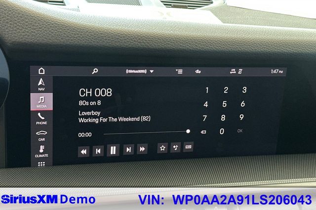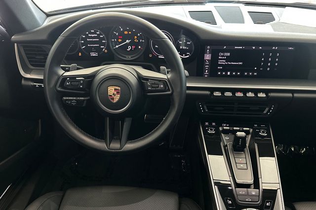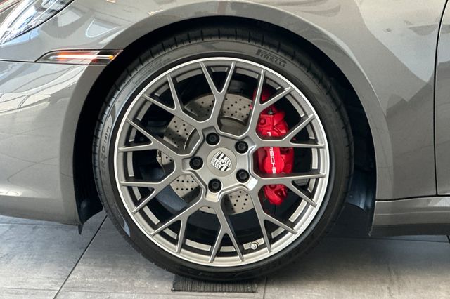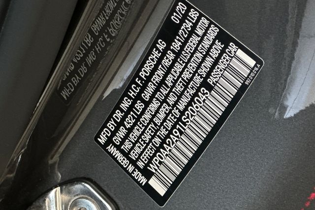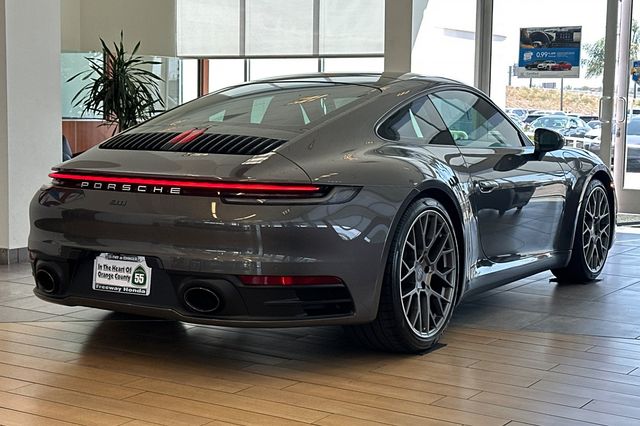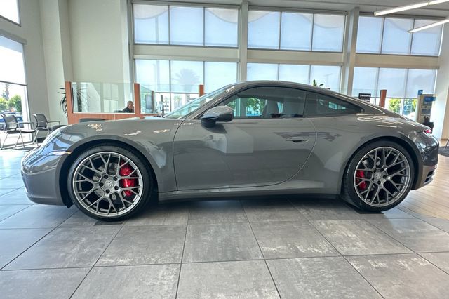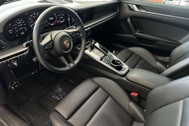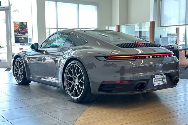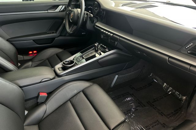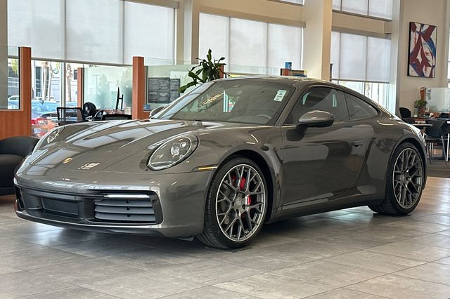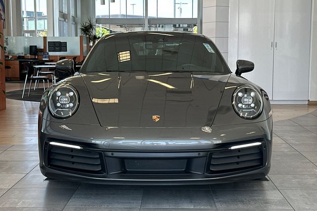 2020 Porsche 911 Carrera. This is a beautiful one owner car in Agate Grey Metallic. It's got a twin-turbo 379hp 3.0L H6 engine and the slick shifting 8 speed PDK that you can drive in manual or automatic mode. It's equipped with 20 & 21" RS Spyder wheels wrapped in a fresh set of Pirelli P-ZERO tires and Red painted Brake Calipers. Options include the PDLS+ Dynamic Light System, 14-Way Powered & heated leather Sport Seats, and heated leather-wrapped steering wheel. There's the switchable Sport Exhaust System, a power glass Sunroof, a BOSE Premium Sound system with Navigation and Apple Carplay capability. The Memory Package, Puddle Lights, Power Steering Plus, the Comfort Access package for easy entry, Blind Spot Monitors, F & R Parking Sensors, Rearview Camera, Forward Collision Warning