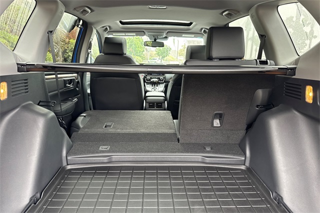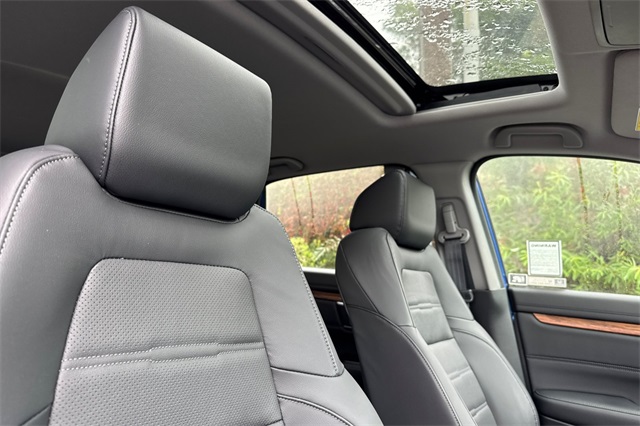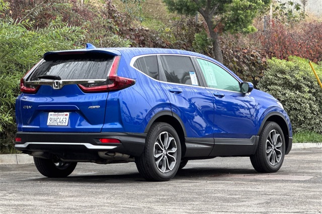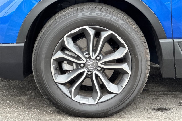 Certified. Aegean Blue Metallic 2021 Honda CR-V EX-L with All-Wheel-Drive. It's powered by a 1.5L DOHC Turbo engine. This model is loaded with safety features like the blind spot information system, adaptive cruise control with low speed follow, forward collision warning & braking, lane keeping assist, and a 3-view backup camera with rear cross traffic alert. It's got conveniences like Apple Carplay and Android auto capability, bluetooth for handsfree phone operation and for streaming your music or podcasts, dual zone front climate control with rear seat A/C vents too. The leather trimmed front seats are heated and powered with a memory on the driver's side. It's also got remote starting, a power moonroof, power tailgate, dark privacy glass, alloy wheels, fog lamps, and even USB power ports for rear seat passengers.