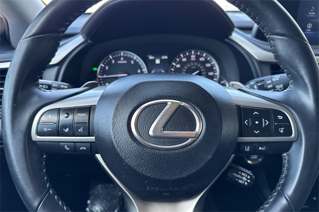 2021 Lexus RX 350. This is Lexus' #1 seller. Powered by a 295HP DOHC 3.5L V6, it's Caviar Black with Black NuLuxe Seat Trim. There are heated and powered front seats with a memory on the driver's side. Safety features include blind spot monitors in the outside mirrors, Dynamic radar cruise control that can keep you a safe distance from the car in front of you, forward collision warning & braking, lane tracing assist, and ABS brakes. The 9-speaker Lexus premium touch screen audio system has Apple Carplay/Android Auto/Amazon Alexa capability, and 6 USB power ports. There's a power tilt/telescopic steering column, power tail gate, power moonroof, auto-dimming mirror, rain-sensing wipers, and much more.