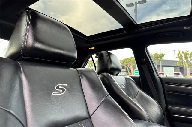 2022 Chrysler 300 S. Get your gangster on! it's Gloss Black with Black leather seat trim. Powered by the strong 300HP 3.6L V6 and an 8-Speed Automatic with paddle shifters. It's loaded with a 506W premium surround sound audio system with Alpine speakers, a Wi-Fi hotspot, navigation, plus Apple Carplay & Android Auto capability. There are 20" alloy wheels and a sport suspension system, heated & powered front seats, a dual pane panoramic moonroof blind spot monitors, backup camera, front & rear parking sensors, a HUGE trunk, and much more.