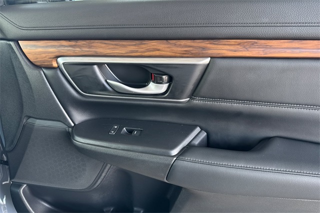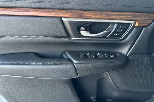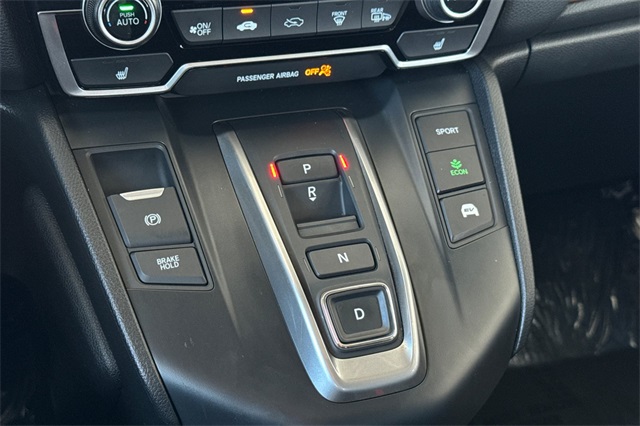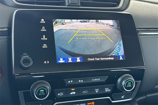 Certified. Sonic Gray Pearl 2022 Honda CR-V Hybrid EX-L AWD All-Wheel-Drive. A one-owner suv sold here and serviced regularly. It's powered by Two electric motors so it's capable of full electric travel for very short distances, and a 2.0L DOHC ICE engine, an automatic transmission with regenerative braking paddles on it's leather wrapped steering wheel. It's equipped with alloy wheels, LED headlights and fog lamps. Inside it's got Black leather trim, a driver's seat that is 10-way power adjustable and 4 ways power for the passenger including seat heaters. It's got a touch screen audio system with Apple Carplay and Android auto capability, bluetooth hands-free phone operation, adaptive cruise control with low speed follow, the blind spot information system, lane keeping assist, forward collision warning & braking, a 3-view backup camera with cross traffic alert, remote starting, rain-sensing wipers, a power tailgate, privacy glass, and much more.