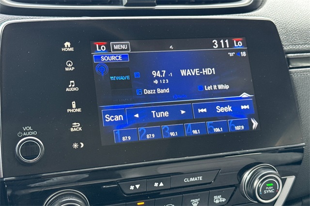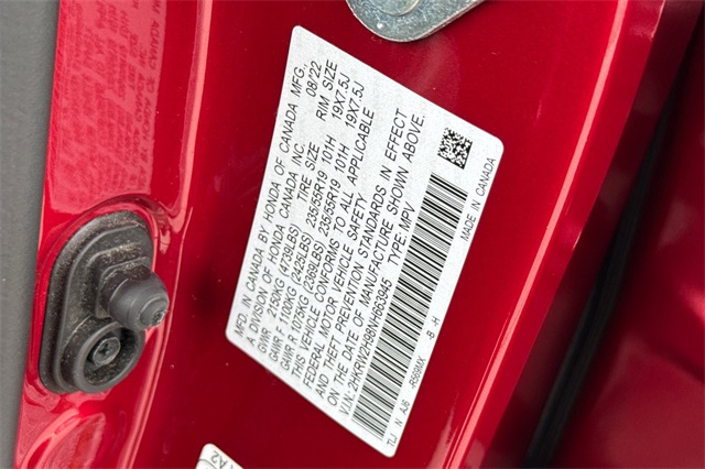 Certified. Radiant Red 2022 Honda CR-V Touring with All-Wheel-Drive . A one-owner suv with a clean Carfax report and service history that's powered by a 1.5L DOHC turbo engine, and an automatic transmission. There is a heated, leather wrapped steering wheel. It's equipped with 19" alloy wheels, LED headlights and fog lamps. Inside it's got gray leather trim, a driver's seat that is 10-way power adjustable and 4 ways power for the passenger including seat heaters. It's got a 330W premium audio system with Apple Carplay and Android auto capability, Garmin navigation system, bluetooth hands-free phone operation, wireless phone charging, adaptive cruise control with low speed follow, the blind spot information system, lane keeping assist, forward collision warning & braking, a 3-view backup camera with cross traffic alert, remote starting, rain-sensing wipers, a hands-free power tailgate, privacy glass, and much more.