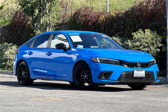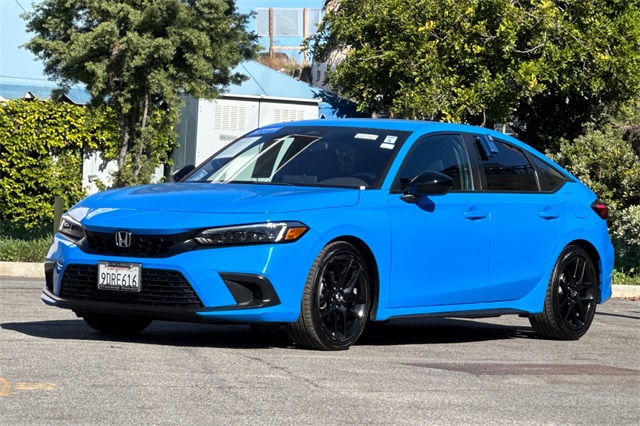 Certified. 2022 Honda Civic Sport Hatchback in Boost Blue Pearl. Powered by a 2.0L i-VTEC engine and an automatic transmission with paddle shifters on it's leather wrapped steering wheel. It's got Black cloth trim, an 8-speaker audio system with Apple Carplay and Android Auto capability, adaptive cruise control, lane keeping assist, forward collision warning & braking, 18" black alloy wheels, LED headlights, remote starting, a 3-view backup camera, a split/fold down rear seatback, and more.