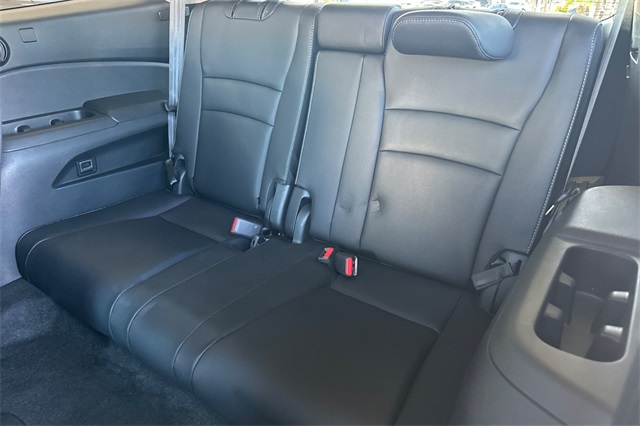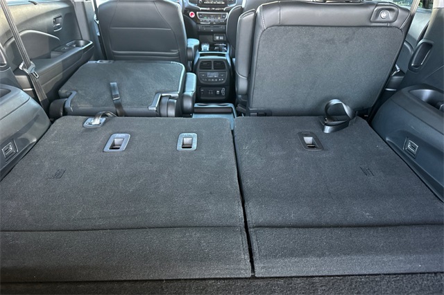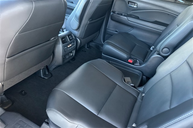 Certified. 2022 Honda Pilot Touring 7 Passenger. It's powered by a 3.5L i-VTEC V6 with a 9-Speed Automatic. It's a one-owner car originally leased and serviced here in Modern Steel Metallic with Black leather seat trim and quad captain's chairs plus a 3rd row 3-person bench, it's equipped with 20" alloy wheels, a power moonroof and power tailgate. It's got a 590W premium sound system with Apple Carplay and Android Auto capability, navigation with HD traffic, and rear seat DvD/BlueRay entertainment system and even a rear seat PA system so you can talk to the kids in back through the stereo speakers. Safety features include the blind spot info system, adaptive cruise control, lane keeping assist, forward collision warning & braking, plus front & rear parking sensors. Other features include dark privacy glass, 3 zone air conditioning, heated and powered front seats, smart entry keys, even remote starting. You can fold the 2nd and 3rd row seats flat for mini van-like storage capability.