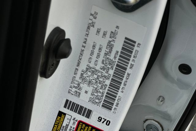2022 Toyota Tacoma SR5. It's powered by the 278HP 3.5L V6 engine with 4x2 drivetrain. It's White outside with Cement/Black cloth seating on the inside. This truck has 57,344 highway miles and is priced at $33,988. Safety features include backup camera, lane departure warning, blind spot monitors, forward collision warning, and adaptive cruise control for highway driving confidence. The Double Cab configuration provides rear seating with fold-up cushions for interior storage flexibility. There's Bluetooth connectivity, USB ports, and Toyota's Entune 3.0 infotainment system with 8-inch touchscreen, navigation, Apple Carplay & Android Auto capability. The bed includes tie-down cleats and rail system for securing cargo plus a 120V power outlet. Power windows, cruise control, and air conditioning keep you comfortable. Built in Mexico with Toyota's reputation for reliability and resale value. Contact Freeway Honda to schedule your test drive.