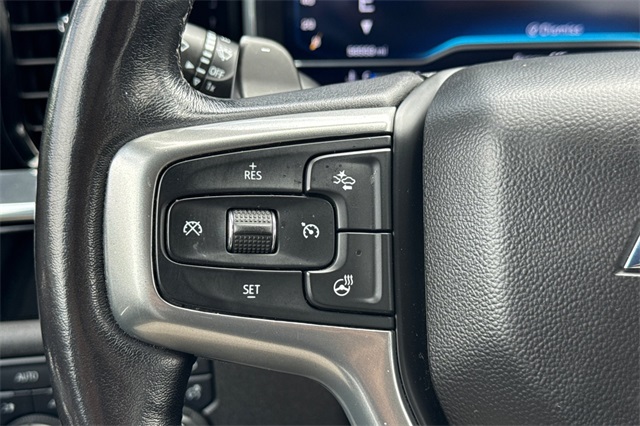 2023 Chevrolet Silverado CrewCab 1500 LTZ with 4WD. It's powered by the tried and true EcoTec 5.3L V8 and it's got 4WD to help get in and out of trouble. It's Jet Black with Leather-trimmed seats and being the LTZ model it's LOADED with 20" alloy wheels, chrome bumpers and door handles, LED headlights, heated power seats, premium stereo with a 13.4" screen wireless Apple Carplay & Android Auto a Wi-Fi hotspot, heated power folding mirrors, the trailer tow package with trailer sway control and receiver hitch, forward collision alert with lane keeping assist, front and rear parking sensors, and power locking tailgate and much more.