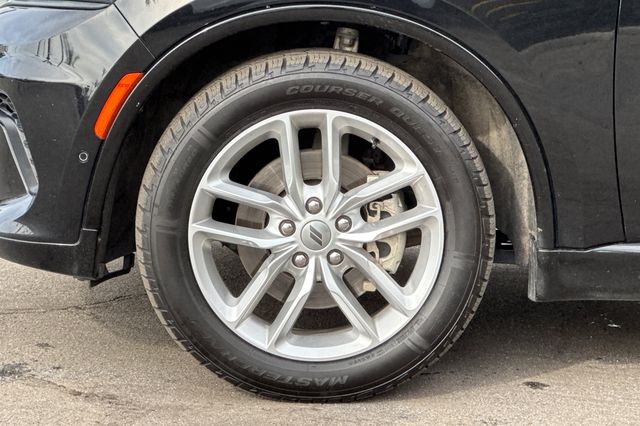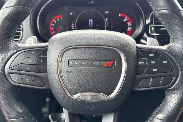It's got a HEMI! 2023 Dodge Durango R/T with All-Wheel-Drive. It's Diamond Black Clearcoat with a Black interior. The 5.7L HEMI V8 puts out 360HP. It's a full time AWD system so you get all the traction all the time. the Dodge performance pages add some fun to your driving along with 20" alloy wheels with fat tires, performance suspension & steering, plus heavy duty 4 wheel disc brakes to help slow you down. There's also the performance hood and dual exhaust tips to complete the sporty look. Inside it's got heated seats, mirrors, and steering wheel, a power seat, wireless phone charger, blind spot monitors, plus a 10.1" touch screen audio system with Apple Carplay & Android Auto capability, rain-sensing wipers, a power tailgate and much more.