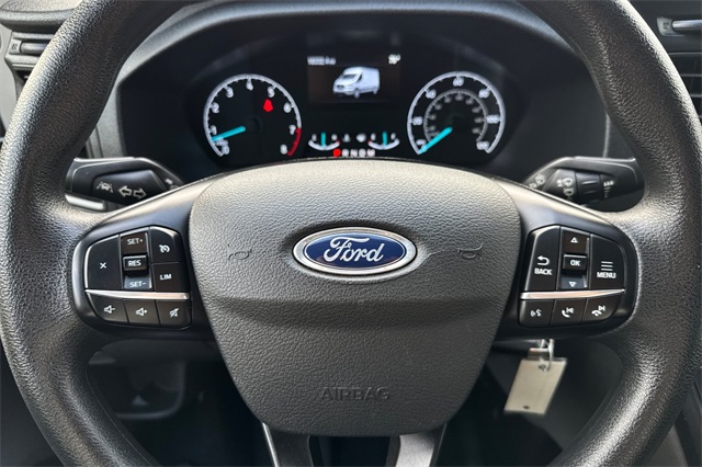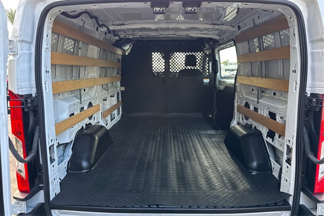 Get her hauling on! 2023 Ford Transit-250 cargo van. Powered by a 275hp 3.5L Flex Fuel V6. It's the expected Oxford White, it's got side door and rear door glass with defroster. There's a divider wall between the cab and the cargo area, plus a rubber floor mat. There's a step rear bumper and running boards on the side, a bluetooth enabled stereo, cold A/C, power windows and door locks, 2 keys, cruise control, fog lamps, and more. Not much more, but more.