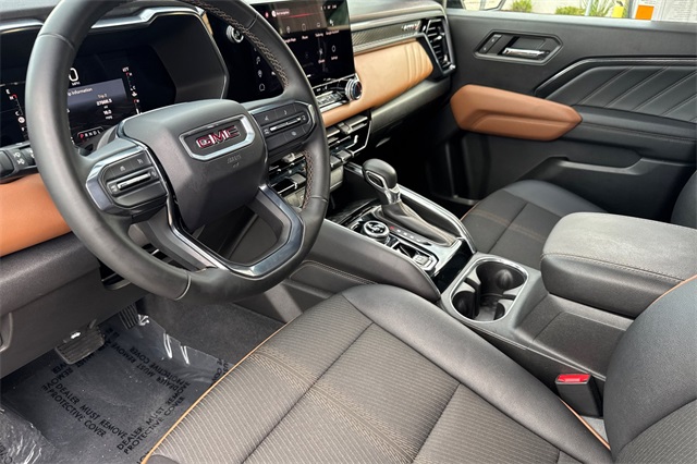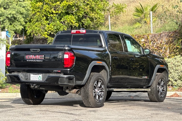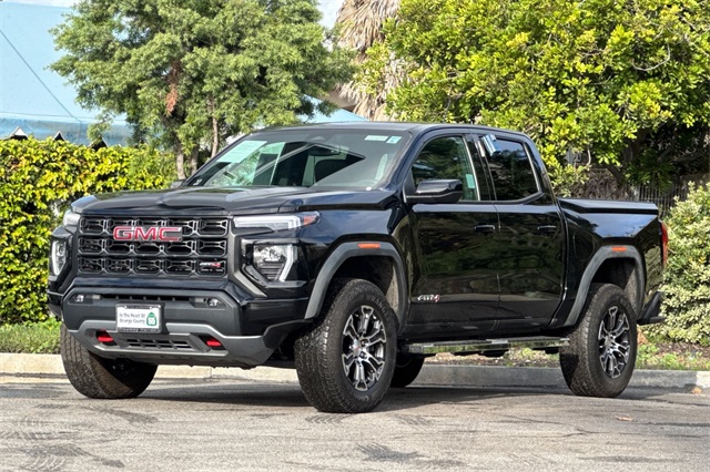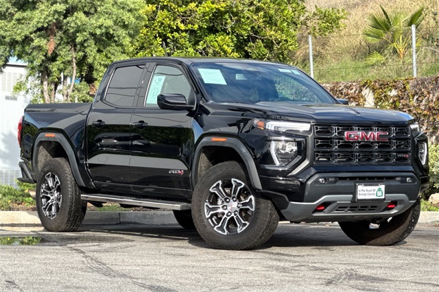 Let's go off-road!! 2023 GMC Canyon AT4 4-Wheel-Drive Crew Cab. Powered by a 2.7L Turbo with 310HP and 430LB-FT of torques !. It's Onyx Black with Black and Timber trim. The 2-speed transfer case, locking differential, all-terrain tires on 18" Alloy wheels and traction control will help you go just about anywhere you want to. There are front tow hooks too in case you actually do get stuck. Do you want to do some towing? It can do that too, it's equipped with the PROGRADE TRAILERING SYSTEM which includes the trailering equipment package, tow hitch receiver, trailer brake controller, and the backup camera has a hitch view mode to make hooking up easier. Inside it's got a heated power driver's seat, a premium infotainment system with an 11.3" touch screen, google maps, wireless Apple Carplay & Android Auto capability, an auto dimming mirror and sliding rear window. The rear bumper has a built-in step to help you get into the spray-lined bed that also has built in lighting. Up front are LED headlights and fog lights. There is even remote starting for the extra hot or extra cold days. This is a one owner truck with a full service history and it still has remaining GM warranty on it.