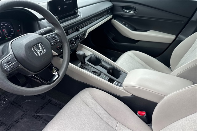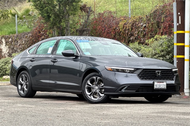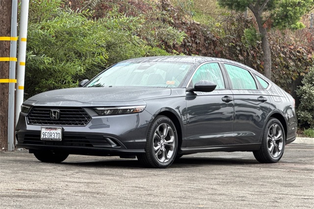 Certified. Meteorite Gray Metallic 2023 Honda Accord EX has had only one local owner, its got a full service history and a clean Carfax report, its powered by a 1.5L DOHC Turbo engine. This model is loaded with safety features like adaptive cruise control with low speed follow, forward collision warning & braking, lane keeping assist, and a blind spot monitors in it's heated mirrors, and 3-view backup camera with cross traffic alert . It's got conveniences like Apple Carplay and Android auto capability along with bluetooth for hands-free phone operation and streaming your music or podcasts, dual zone front climate control a 10-way power drivers seat, alloy wheels, LED head lights smart entry keys with remote starting, and a split-fold down rear seat back for extra long cargo.
