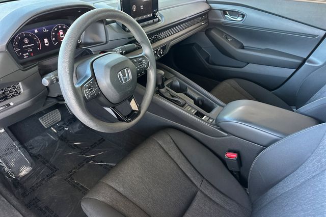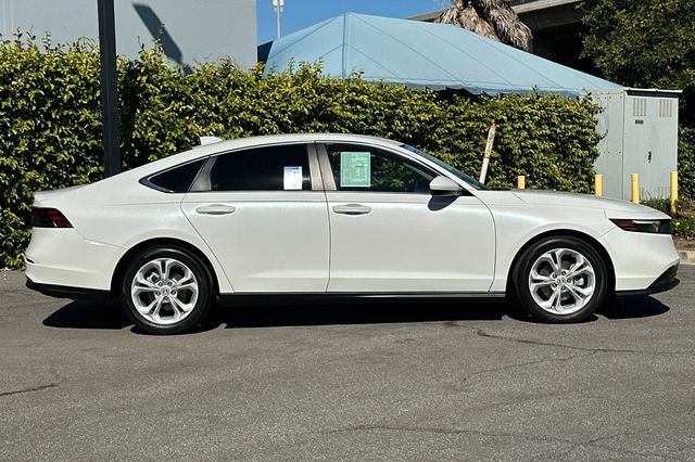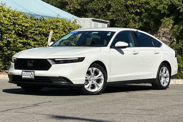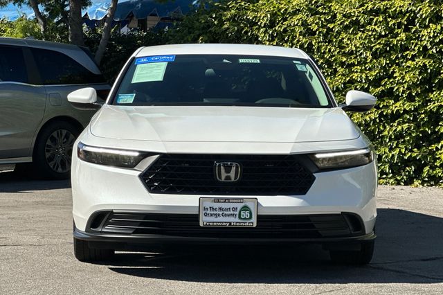 Certified. 2023 Honda Accord LX. It's powered by the 192HP 1.5L turbocharged 4-cylinder with automatic automatic transmission. It's Platinum White Pearl outside with Black cloth interior. This sedan delivers an EPA-estimated 32 city/42 highway MPG. Honda Sensing safety suite includes adaptive cruise control, collision mitigation braking, lane keeping assist, and road departure mitigation. There's a multi-angle rearview camera, automatic high beams, and traffic sign recognition. The spacious cabin features a 7-inch touchscreen with Apple CarPlay and Android Auto, dual-zone automatic climate control, and 60/40 split-folding rear seats. Additional equipment includes LED headlights and taillights, remote engine start, and push-button start with smart entry. With just 28,834 miles, this American-built Accord is priced at $24,988. Contact Freeway Honda to schedule your test drive.