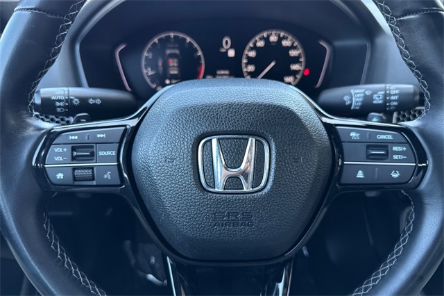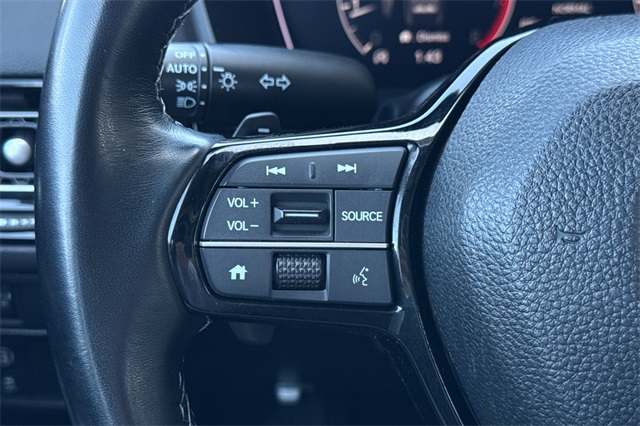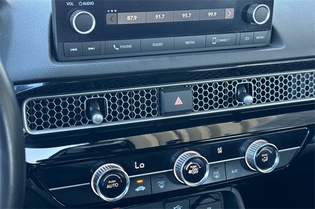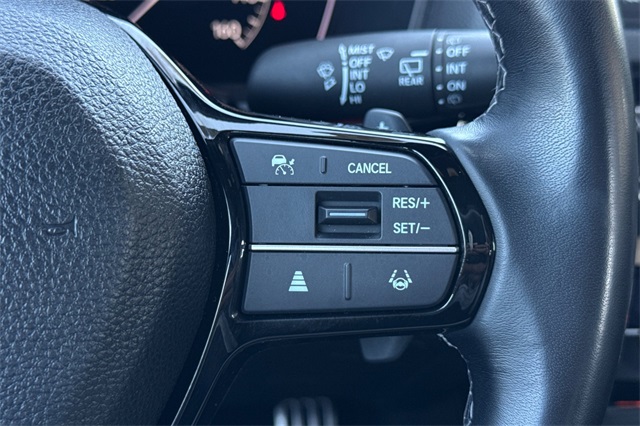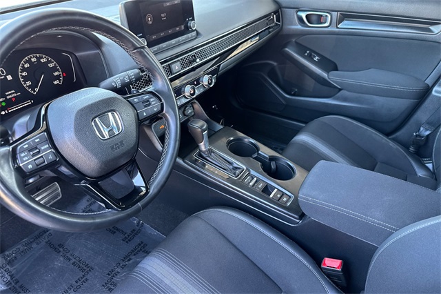 Certified. Sonic Gray Pearl 2023 Honda Civic Sport Sedan. A one owner locally owned and serviced car powered by a 2.0L i-VTEC engine and an automatic transmission with paddle shifters on it's leather wrapped steering wheel. It's got Black cloth trim, Apple Carplay and Android Auto capability, adaptive cruise control, lane keeping assist, forward collision warning & braking, 18" black alloy wheels, LED headlights, remote starting, a 3-view backup camera, a fold down rear seatback, and more.