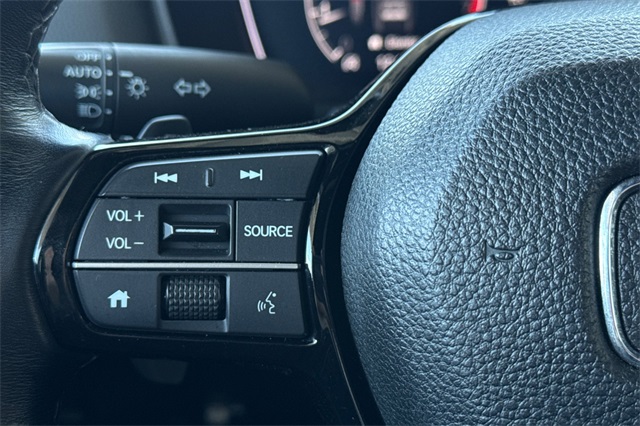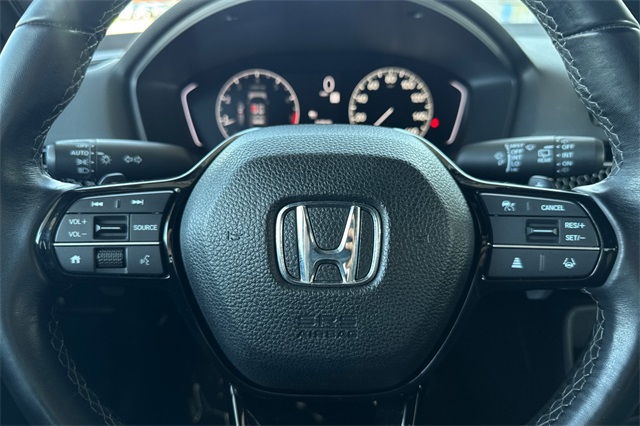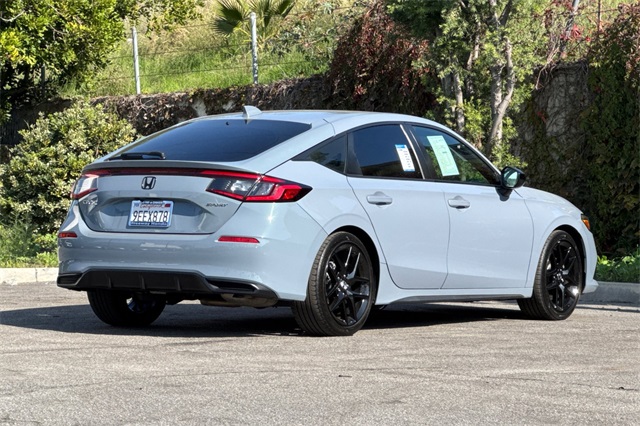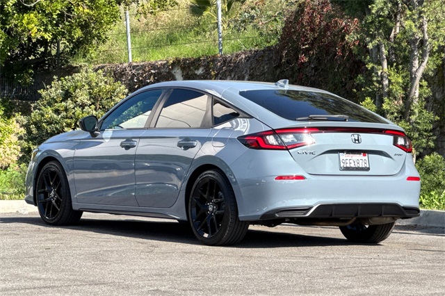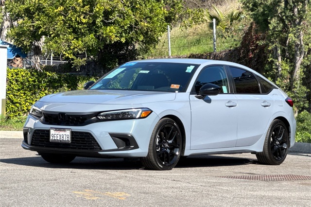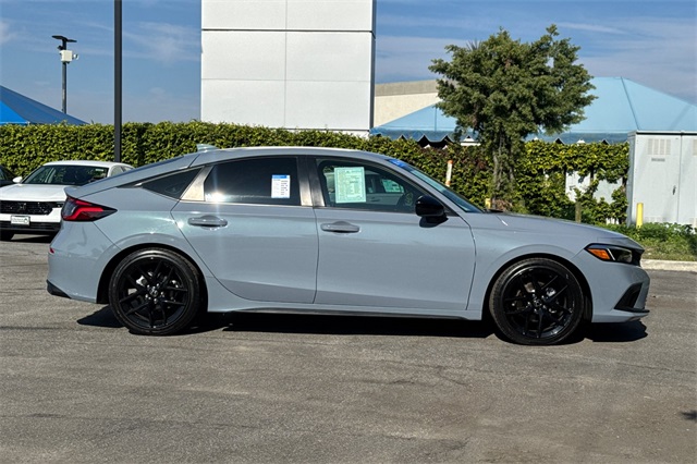 Certified. Sonic Gray Pearl 2023 Honda Civic Sport Hatchback. A one owner locally owned and serviced car powered by a 2.0L i-VTEC engine and an automatic transmission with paddle shifters on it's leather wrapped steering wheel. It's got Black cloth trim, an 8-speaker audio system with Apple Carplay and Android Auto capability, adaptive cruise control, lane keeping assist, forward collision warning & braking, 18" black alloy wheels, LED headlights, remote starting, a 3-view backup camera, a split/fold down rear seatback, and more.