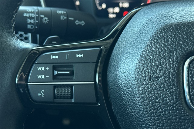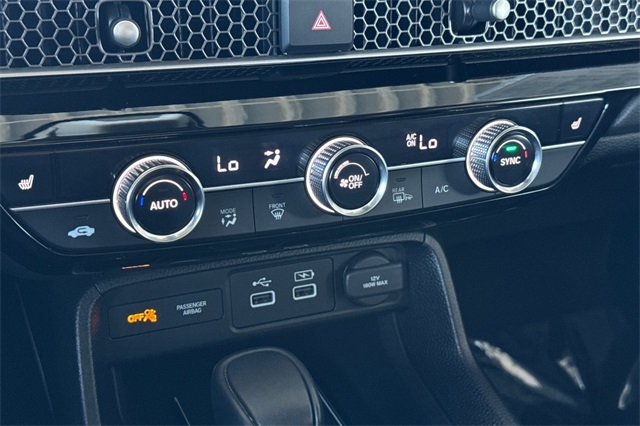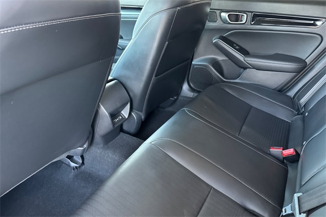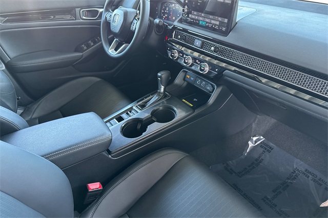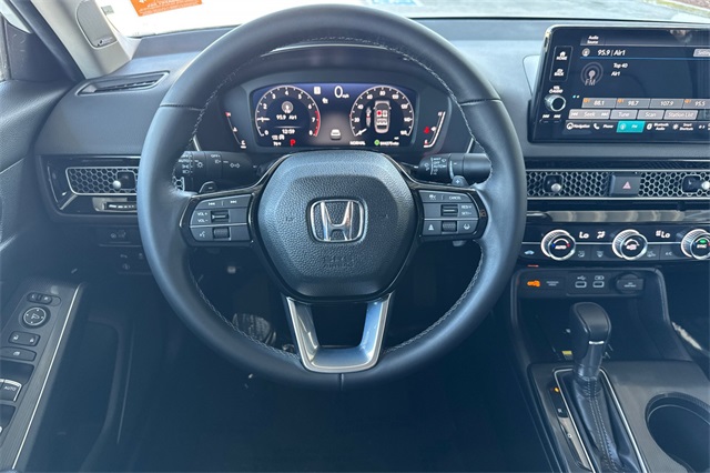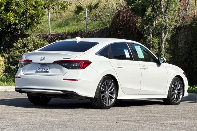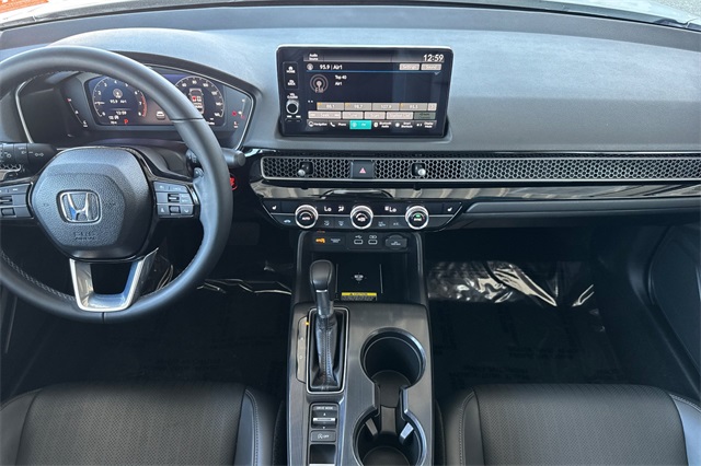 Certified. Platinum White Pearl 2023 Honda Civic Touring Touring sedan. This is the luxury version of the Civic, powered by a 1.5L DOHC Turbocharged engine. On the outside it's equipped with 18" alloy wheels LED head lamps and fog lamps, plus front and rear parking sensors. Inside it's got black leather trim, power adjustable, heated front seats. It's got the BOSE premium audio system with wireless Apple Carplay/Android auto/phone charging capability, navigation, and 12 speakers for great sound. Safety features include blind spot alerts in the heated outside mirrors, adaptive cruise control, lane keeping assist, forward collision warning & braking, a 3-view backup camera with cross traffic alert. There are also smart entry keys with remote starting, a power moonroof, and much more.