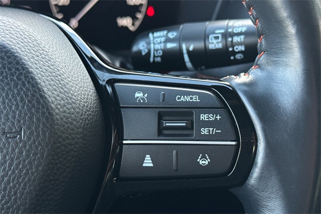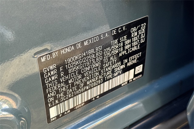 Certified. This is a 2nd generation (the new style!)2023 Honda HR-V Sport in Nordic Forest Pearl. It's powered by a 2.0L 16V i-VTEC engine. The interior has orange trimmed and heated Sport seats, a 180 watt, 6-speaker audio system with Apple Carplay and Android Auto capability, bluetooth for phone and music streaming, a split fold down rear seat. It's got safety features like the blind spot info system, adaptive cruise control with Stop & Go, lane keeping assist, a 3-view backup camera with rear cross traffic alert, and also forward collision warning & braking . You've also got dark privacy glass, black alloy wheels, LED headlights for great night time vision, and even remote starting so you can cool your car off before getting inside it on those hot summer days.