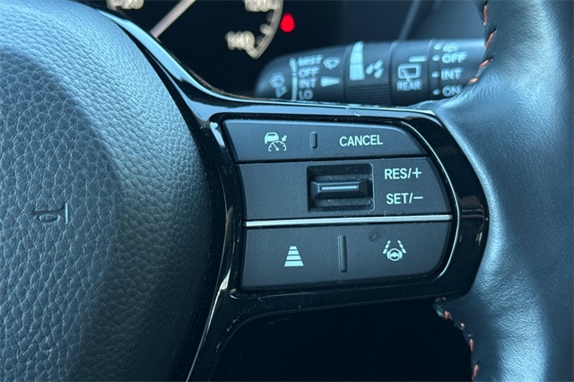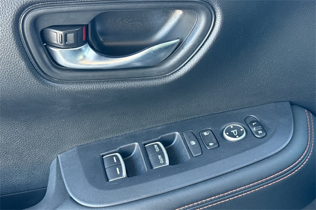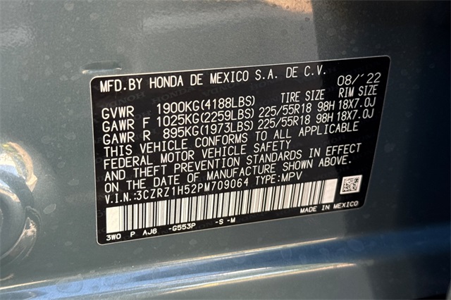 Certified. This is a 2nd generation (the new style!)2023 Honda HR-V Sport in Nordic Forest Pearl. It's powered by a 2.0L 16V i-VTEC engine. The interior has orange trimmed and heated Sport seats, a 180 watt, 6-speaker audio system with Apple Carplay and Android Auto capability, bluetooth for phone and music streaming, a split fold down rear seat. It's got safety features like the blind spot info system, adaptive cruise control with Stop & Go, lane keeping assist, a 3-view backup camera with rear cross traffic alert, and also forward collision warning & braking . You've also got dark privacy glass, black alloy wheels, LED headlights for great night time vision, and even remote starting so you can cool your car off before getting inside it on those hot summer days.