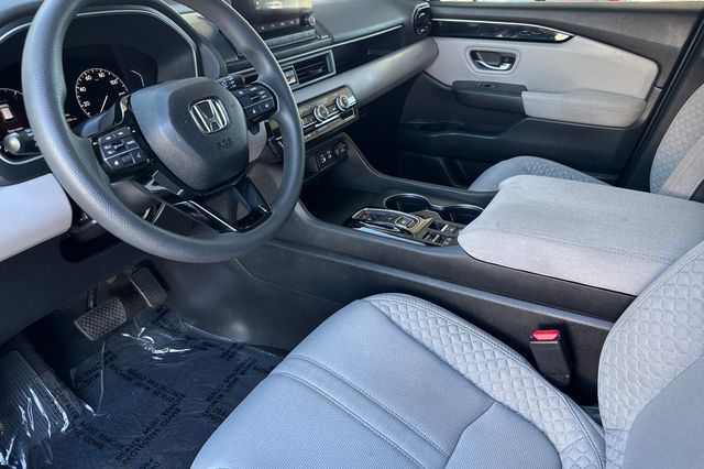 Certified. 2023 Honda Pilot LX. It's powered by the 285HP 3.5L V6 with 10-speed automatic transmission. It's Platinum White Pearl outside with Gray cloth seating on the inside. This 8-passenger SUV has three rows of seating with split-folding second and third rows for maximum cargo flexibility. There's a backup camera, Honda Sensing suite with adaptive cruise control, collision mitigation braking, lane keeping assist, and road departure mitigation. The infotainment system features an 8-inch touchscreen with Apple CarPlay and Android Auto. Other features include automatic climate control, keyless entry, push-button start, and roof rails. With only 26,656 miles, this below-average mileage Pilot is priced at $34,988. Contact Freeway Honda to schedule your test drive.