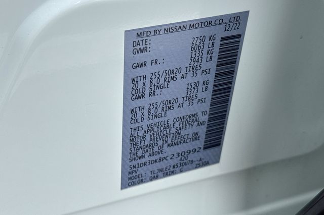- VIN : 5N1DR3DK8PC230992