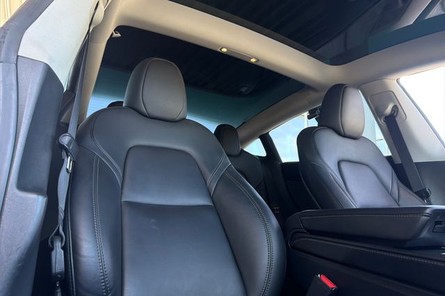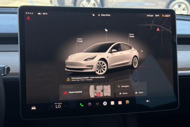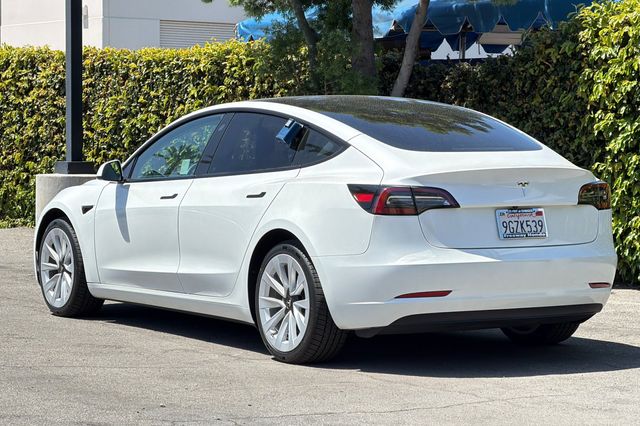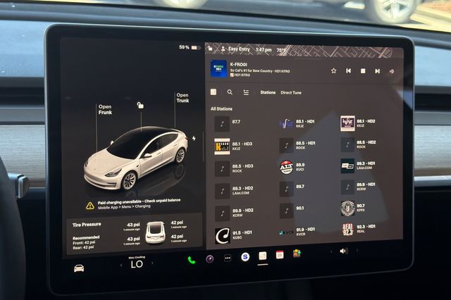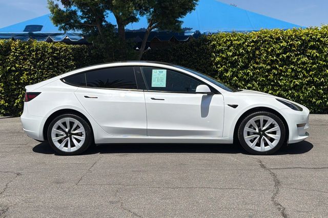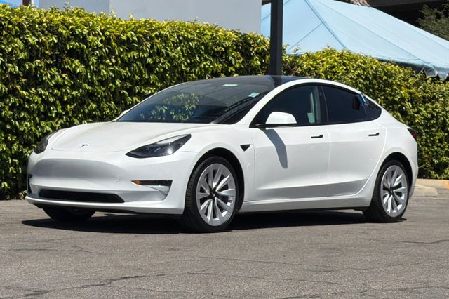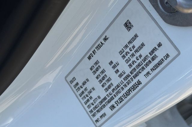 Pearl White Multi-Coat 2023 Tesla Model 3. This is one-owner all-electric car travel up to 272 miles on charge. These cars are well equipped with heated and powered front seats, a power tilt/telescopic steering column, a surround view camera, panoramic roof, LED lighting all around, adaptive cruise control, front & rear parking sensors, a power trunk release, multi-zone climate control, the premium 19" alloy wheels, and much more