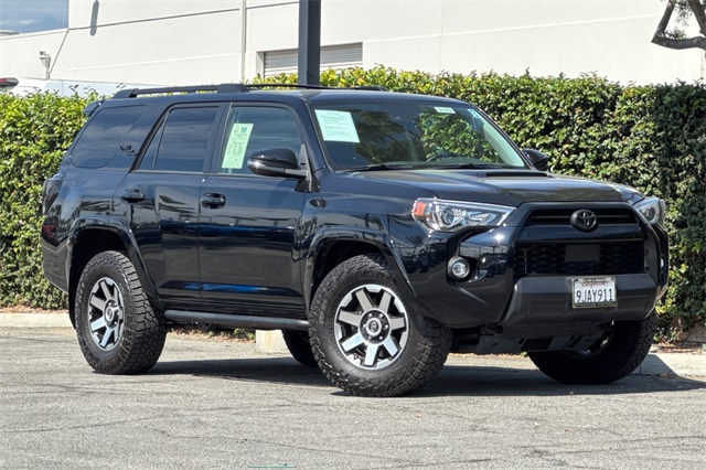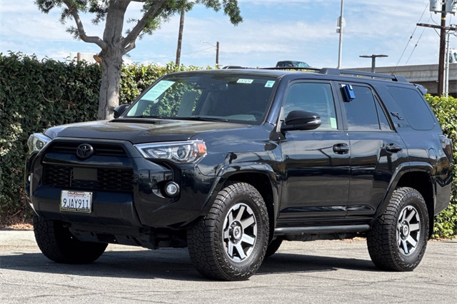 2023 Toyota 4Runner TRD Off-Road Premium 4WD is powered by a DOHC 24V 4.0L V6 with a part-time 4-Wheel-Drive system. It's Midnight Black Metallic with Black SofTex Leather style trim. Both front seats are heated and power operated. There are skid plates and rock rails underneath to keep you protected off road. There are roof rails and cross bars on top to help you carry more stuff with you. There's a tow hitch receiver out back too. The stereo system is Apple Carplay & Android Auto capable along with a built-in satellite based navigation system, blind spot monitors, a backup camera, radar cruise control, forward collision warning & braking, lane departure alert, an auto dimming mirror, and more.