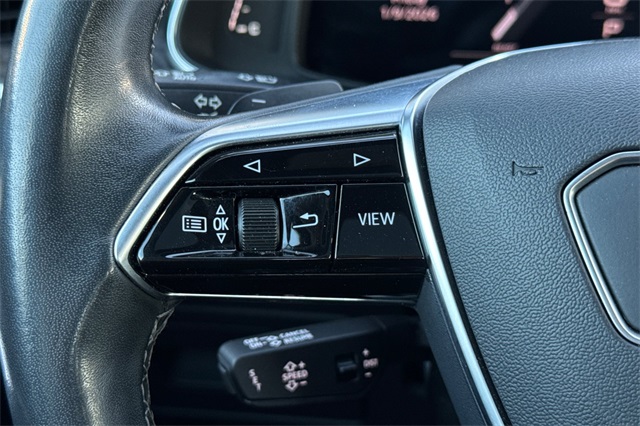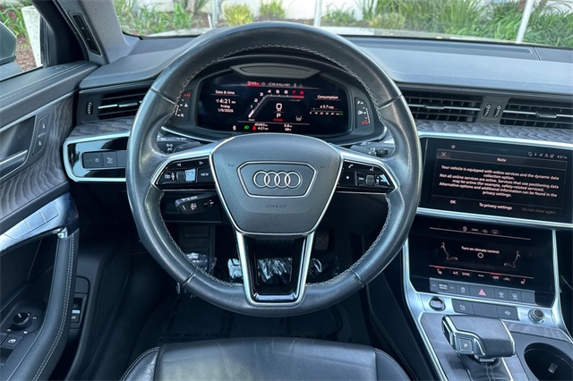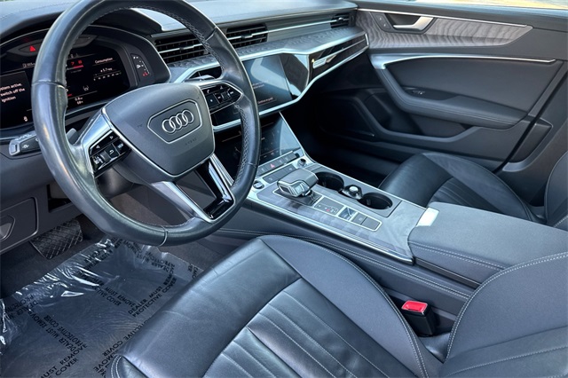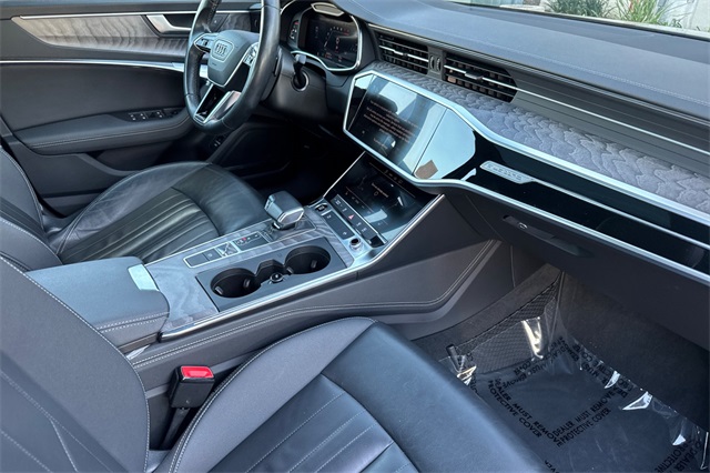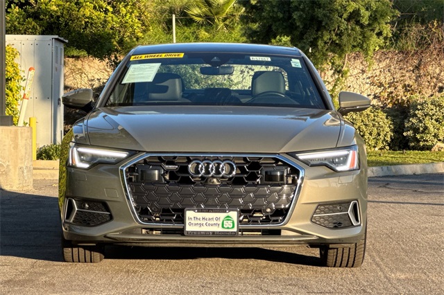 2024 Audi A6 45 Premium Plus quattro. It's powered by a 268HP 2.0L engine with a full time All-Wheel-Drive system. It's Chronos Gray Metallic with heated and powered seats with Black Leather trim. It's loaded with dual zone climate control, the smart entry system, a panoramic moonroof with power sunshade. There's a 16 speaker audio system with navigation, wireless Apple Carplay/Android Auto/Phone charging, auto-dimming mirrors (3), an all-around view camera, power folding mirrors with blind spot alerts, adaptive cruise control, front & rear parking sensors, and so much more.