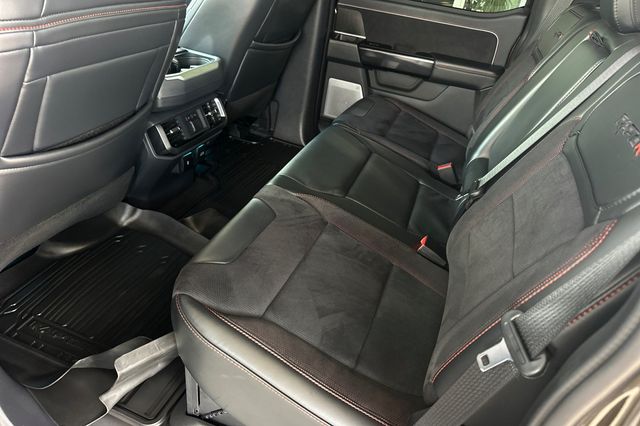 2024 Ford RAPTOR "R". It's powered by the 760HP 5.2L supercharged V8, the legendary Predator engine from the Shelby GT500. It's Shelter Green outside with Black leather/ultrasuede RECARO seats on the inside. The heated and ventilated front buckets are 10-way power adjustable with memory settings. There's a 12-inch touchscreen with SYNC 4A, wireless Apple CarPlay and Android Auto, 360-degree camera system with split-view display. The truck includes adaptive cruise control, a dual pane panoramic moonroof. You get the electronic locking rear differential, Torsen front differential, FOX Live Valve shocks and selectable drive modes including Baja for off-road performance. There's remote start, wireless charging pad, Bang & Olufsen premium audio, and LED headlights with RIDGID LED fog/driving lamps. Just 5,036 miles for $134,988.