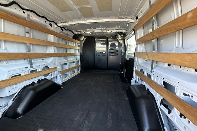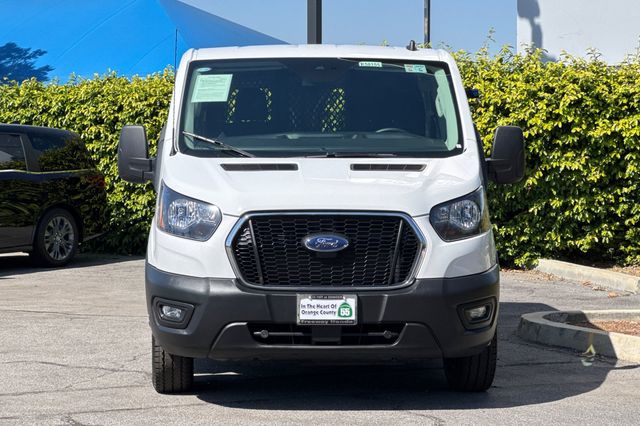 2024 Ford Transit Low Roof Cargo Van. It's powered by the 275HP 3.5L V6 naturally aspirated engine with rear-wheel drive. It's Oxford White outside with Ebony cloth interior. This commercial workhorse shows just 13,023 miles - exceptionally low for a work van. The low roof design maximizes maneuverability in parking garages and drive-throughs while providing 246 cubic feet of cargo space. Features include power windows, power locks, air conditioning, AM/FM stereo with Bluetooth and USB connections, dual front airbags, ABS brakes, running boards, electronic stability control, and rear cargo doors with 180-degree swing. There is a separator between the driver's compartment and cargo area plus tie down hooks and mat on the floor. The 3.5L V6 delivers reliable performance without turbo complexity, rated at 14 city/19 highway MPG. Heavy-duty rear suspension handles payloads up to 3,230 pounds. Priced at $31,988. Contact Freeway Honda to schedule your test drive.