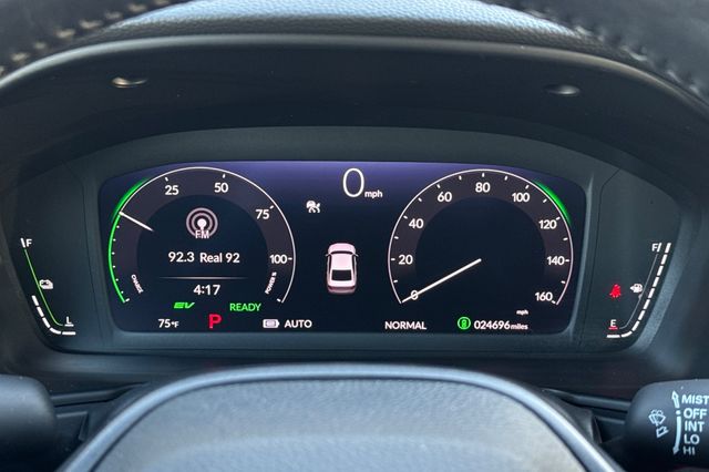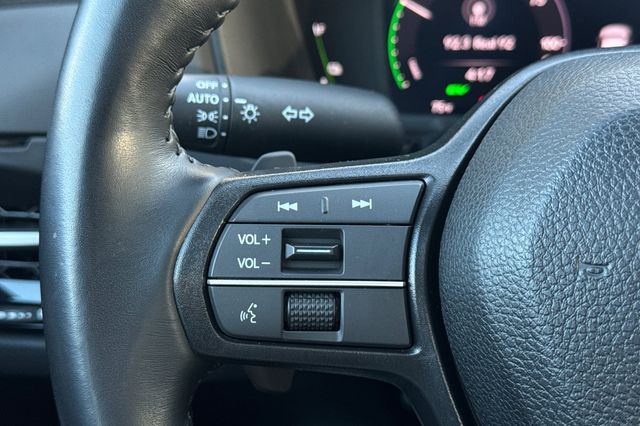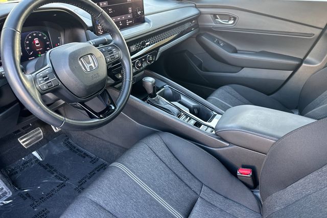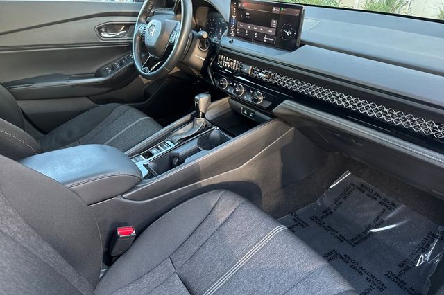 Certified. 2024 Honda Accord Hybrid Sport This one is powered by two electric motors plus a 2.0 DOHC 16V ICE engine. You end up with strong smooth power, great traction and fuel economy. It's Still Night Pearl and inside it has Black interior trim. Features include 19" alloy wheels, LED lighting for great night time visibility, a rear spoiler, heated front seats, and power moonroof. The seat adjustment is powered for the driver. The 8-speaker 180W audio system has a color touch screen, with wireless Apple Carplay/Android Auto capability and Alexa built-in. There are blind spot alerts in the heated outside mirrors, adaptive cruise control with stop & go, forward collision warning & braking, lane keeping assist, a 3-view backup camera rear cross traffic alert plus dual zone climate control, and split/fold down rear seat back for extra carrying capability.