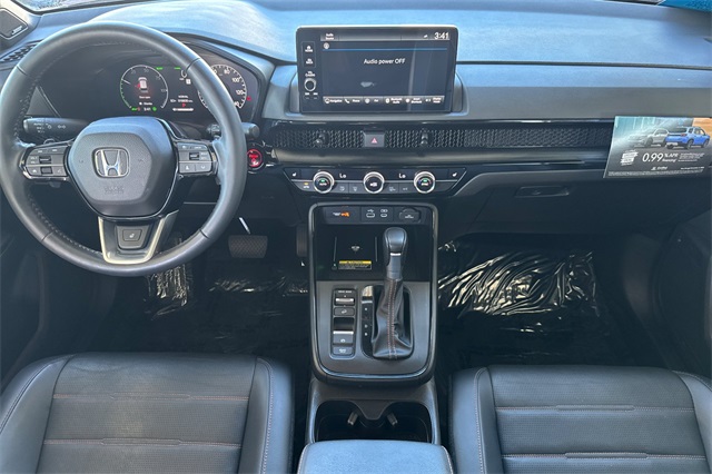 Certified. 2024 Honda CR-V Hybrid Sport Touring with All-Wheel-Drive. The CR-V is Honda of America's top selling model. This one is powered by two electric motors plus a 2.0 DOHC 16V ICE engine with Real Time All-Wheel-Drive. You end up with strong smooth power, great traction and fuel economy. It's Still Night Pearl and inside it has Black leather seat trim with accent stitching. Features include Black alloy wheels and roof rails, LED lighting for great night time visibility, a hands-free power tailgate, and power moonroof. The front seats are heated and powered with a 2-position memory for the driver. The BOSE premium audio system has a 9'' touch screen, with wireless phone charging/Apple Carplay/Android Auto capability. There are blind spot alerts in the heated outside mirrors, adaptive cruise control with stop & go, forward collision warning & braking, lane keeping assist, a 3-view backup camera along with front & rear parking sensors. Dual zone climate control, and dark privacy glass help keep passengers cool inside.