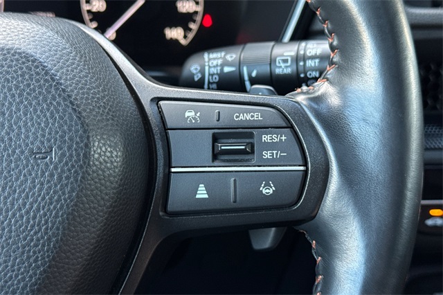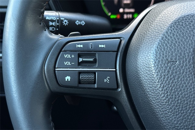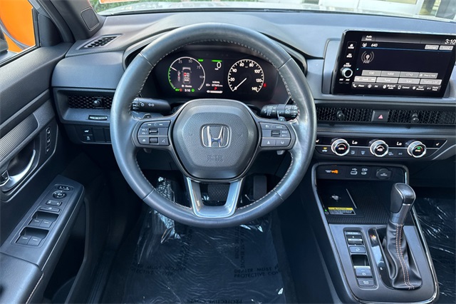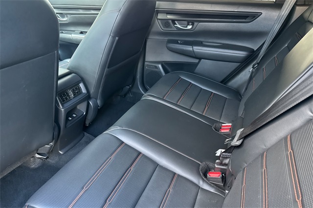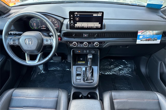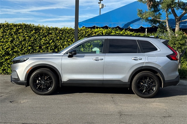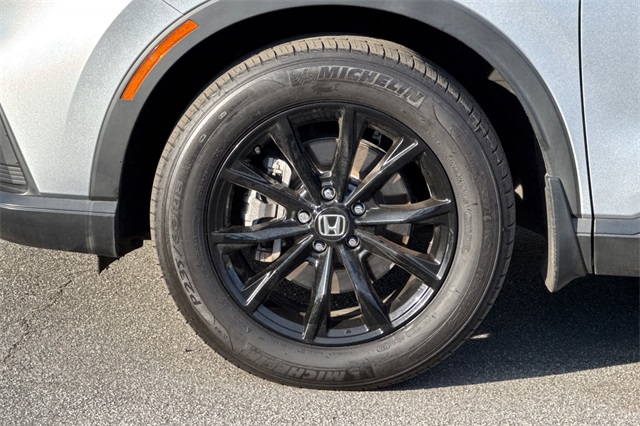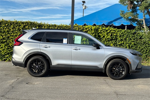 Certified. 2024 Honda CR-V Hybrid Sport-L with All-Wheel-Drive. The CR-V is Honda of America's top selling model. This one is powered by two electric motors plus a 2.0 DOHC 16V ICE engine with Real Time All-Wheel-Drive. You end up with strong smooth power, great traction and fuel economy. It's Lunar Silver Metallic and inside it has Black leather seat trim with accent stitching. Features include Black alloy wheels and roof rails, LED lighting for great night time visibility, a power tailgate, and power moonroof. The front seats are heated and powered with a 2-position memory for the driver. The 320W audio system has a 9'' touch screen, with wireless phone charging/Apple Carplay/Android Auto capability. There are blind spot alerts in the heated outside mirrors, adaptive cruise control with stop & go, forward collision warning & braking, lane keeping assist, a 3-view backup camera along with front & rear parking sensors. Dual zone climate control, and dark privacy glass help keep passengers cool inside.