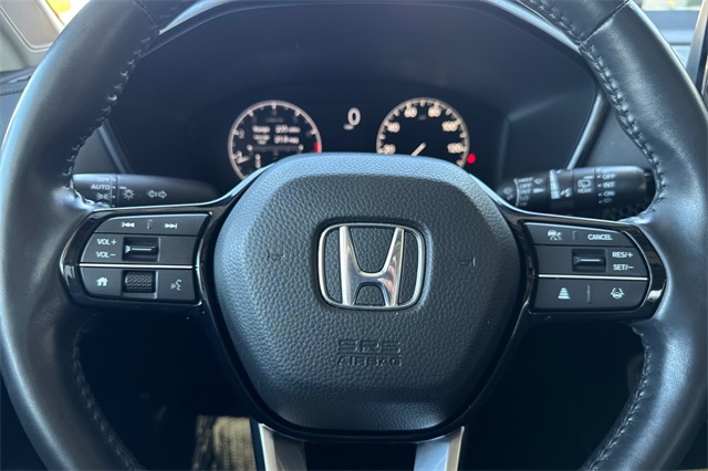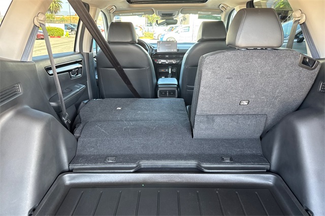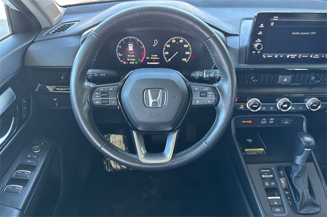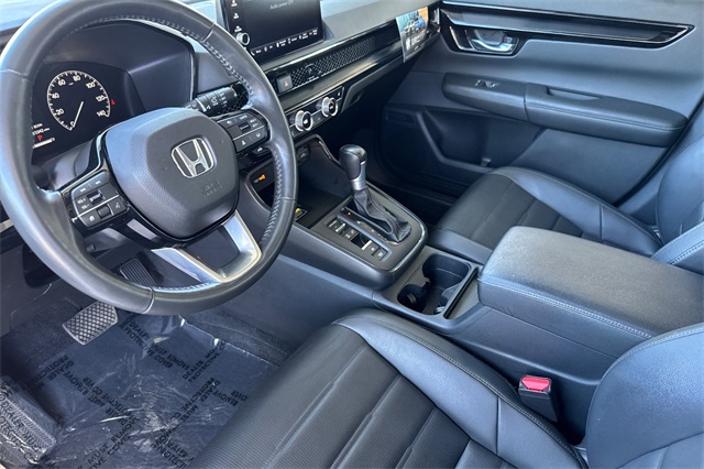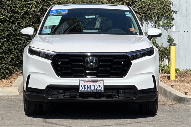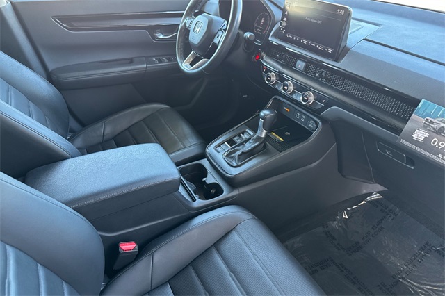 Certified. The CR-V is Honda of America's top selling model. This 2024 Honda CR-V EX-L AWD is powered by a turbocharged 1.5L DOHC 16V. It's color is called Platinum White Pearl and it has Black leather seat trim. Features include Alloy Wheels, LED lighting for great night time visibility, a power tailgate, and power moonroof. The front seats are heated and powered with a 2-position memory for the driver. The 320W audio system has a 9'' touch screen, with wireless phone charging/Apple Carplay/Android Auto capability. There are blind spot alerts in the heated outside mirrors, adaptive cruise control with stop & go, forward collision warning & braking, lane keeping assist, a 3-view backup camera along with front & rear parking sensors. Dual zone climate control, and dark privacy glass help keep passengers cool inside.