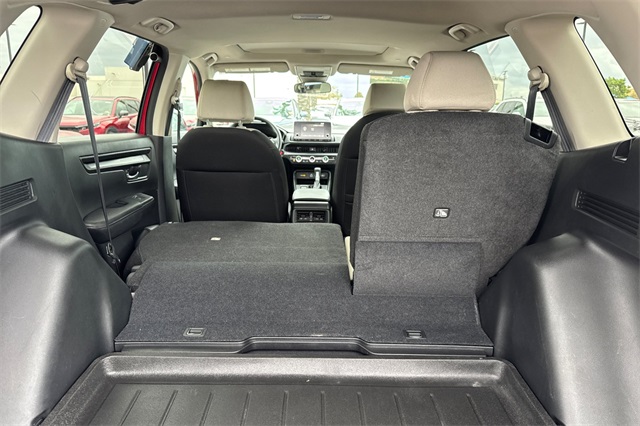 Certified. Radiant Red Metallic 2024 Honda CR-V EX with All-Wheel-Drive has had only one local owner, its got a full service history and a clean Carfax report, its powered by a 1.5L DOHC Turbo engine. This model is loaded with safety features like the blind spot information system, adaptive cruise control with low speed follow, forward collision warning & braking, lane keeping assist, and a 3-view backup camera with rear cross traffic alert. It's got conveniences like Apple Carplay and Android auto capability, bluetooth for handsfree phone operation and for streaming your music or podcasts, dual zone front climate control with rear seat A/C vents too. The front seats are heated and the driver's side has 10-way power adjustment. It's also got remote starting, a power moonroof, dark privacy glass, alloy wheels, LED headlamps for great night time visibility, and even USB power ports for rear seat passengers.