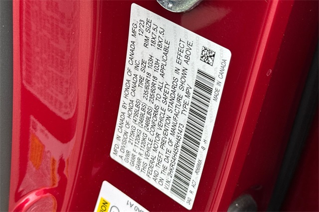 - VIN : 2HKRS4H45RH451473