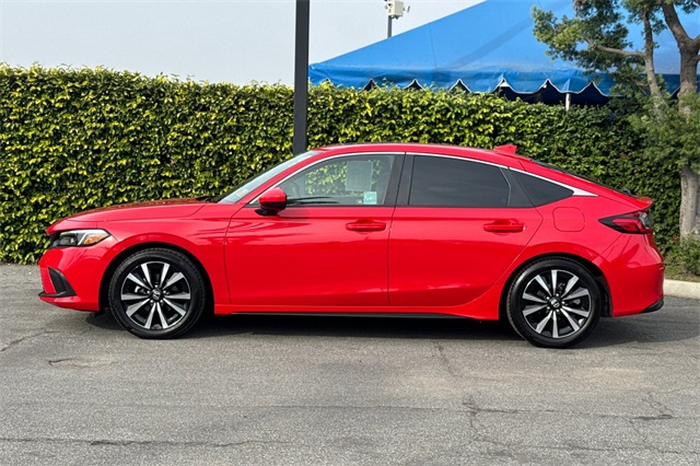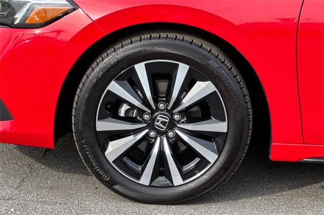 Certified. Rallye Red 2024 Honda Civic EX-L Hatchback powered by a 1.5L DOHC Turbocharged engine, and an automatic transmission. Outside it's equipped with alloy wheels, a power moonroof, and LED headlights. Inside it's got black leather trim, and the driver's seat is power adjustable, both front seats are heated, and it's got Apple Carplay and Android auto capability, bluetooth for phone and music streaming, adaptive cruise control, lane keeping assist, blind spot monitors in the heated mirrors, forward collision warning & braking, push button starting, a 3-view backup camera with cross traffic alert, power moonroof, and much more.