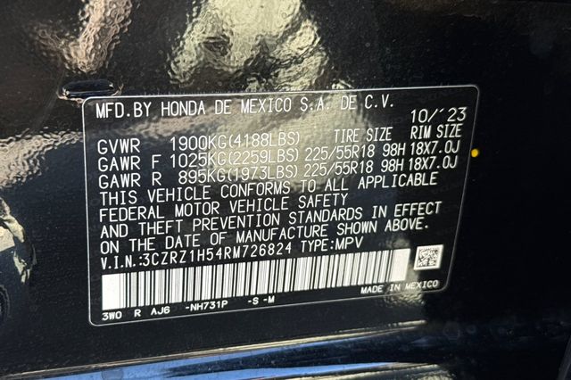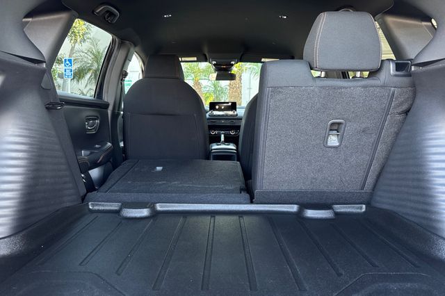 2024 Honda HR-V Sport. Esta equipada con el motor de 158HP 2.0L 4 cilindros naturalmente aspirado, no el turbo mas pequeno. Es Crystal Black Pearl por fuera con tapiceria Black cloth por dentro. Los asientos delanteros son comodos, el asiento trasero tiene respaldo abatible 60/40 para aumentar el espacio de carga. Incluye camara de reversa, advertencia de salida de carril, advertencia de colision frontal, control de crucero adaptativo. La transmision automatic ofrece manejo suave y eficiencia de combustible. Tiene 21,885 millas con precio de $26,988. Sistema de infoentretenimiento con pantalla tactil, conectividad Bluetooth, multiples puertos USB. Fabricada en Mexico con la calidad Honda. Contact Freeway Honda to schedule your test drive.