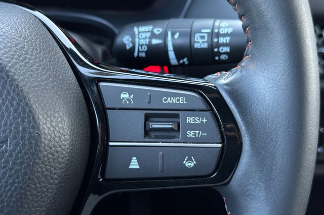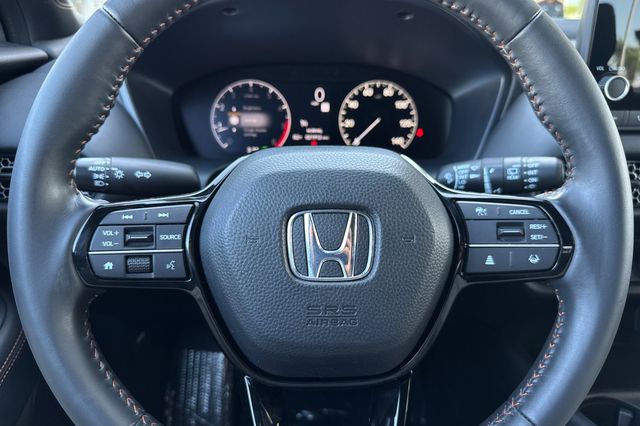 Certified. This is a 2nd generation (the new style!)2024 Honda HR-V Sport in Crystal Black Pearl. It's powered by a 2.0L 16V i-VTEC engine. The interior has orange trimmed and heated Sport seats, a 180 watt, 6-speaker audio system with Apple Carplay and Android Auto capability, bluetooth for phone and music streaming, a split fold down rear seat. It's got safety features like the blind spot info system, adaptive cruise control with Stop & Go, lane keeping assist, a 3-view backup camera with rear cross traffic alert, and also forward collision warning & braking . You've also got dark privacy glass, black alloy wheels, LED headlights for great night time vision, and even remote starting so you can cool your car off before getting inside it on those hot summer days.