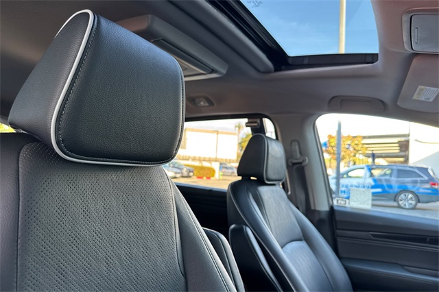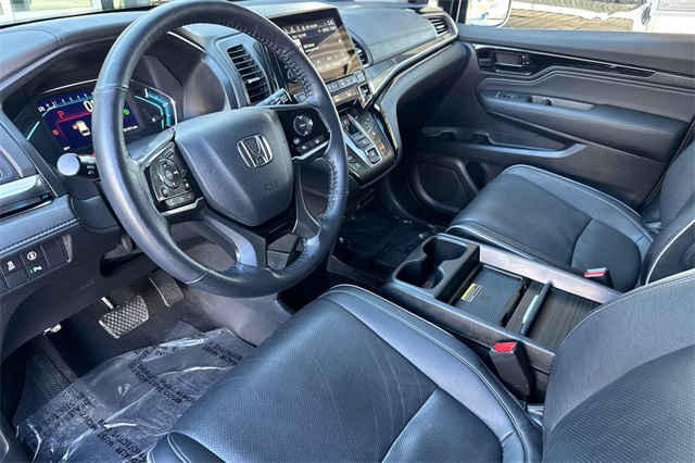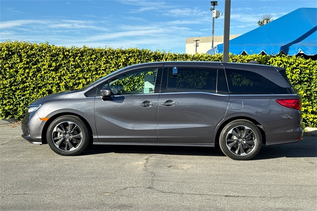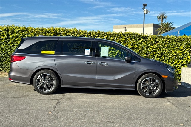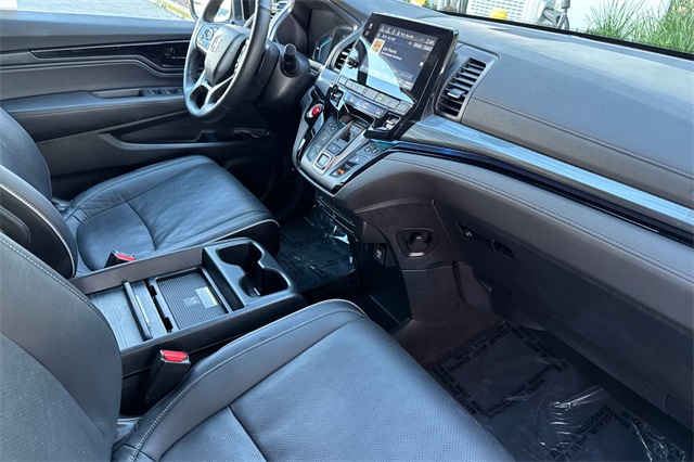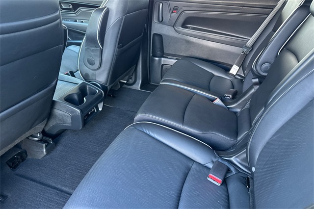 Certified. Modern Steel Metallic The 2024 Honda Odyssey Elite is the top-tier trim, packed with luxury and tech, featuring heated/ventilated leather seats, a premium 11-speaker audio system with a subwoofer, navigation, a Blu-ray/DVD rear entertainment system, wireless phone charger, and hands-free power tailgate. It also includes advanced safety with Honda Sensing, CabinWatch/CabinTalk, power-folding side mirrors, acoustic glass, and unique 19-inch wheels, seating for up to 8 people, smart entry keys, LED lighting inside and out for both ambience and better night time visibility. In addition to dark privacy glass there are also pull up sunshades for the 2nd and 3rd rows.