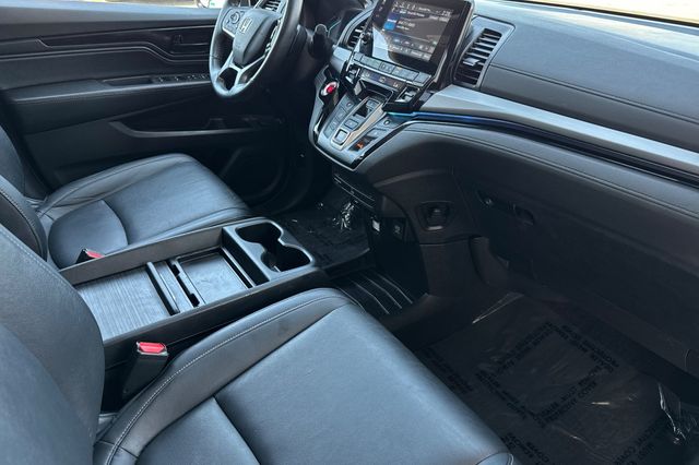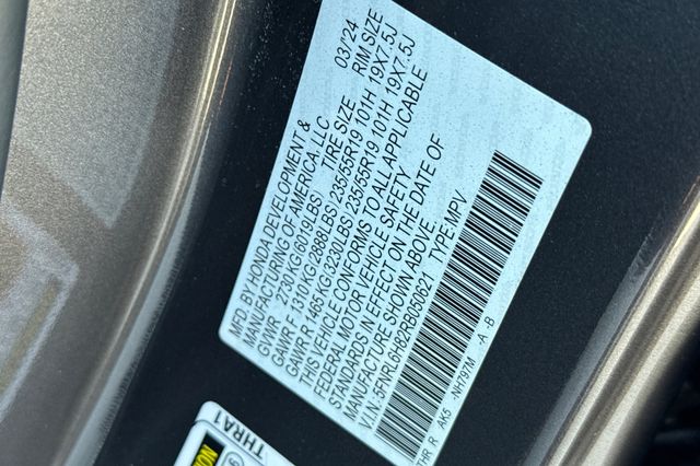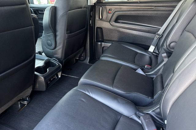 Certified. 2024 Honda Odyssey Touring It's powered by a 3.5L i-VTEC V6 SOHC with a 10-Speed Automatic. It's Modern Steel Metallic with black leather (for easy cleanup of spills) heated and powered front seats, the driver's side also has a two position memory. This "mini"-van is great for your family with seating for up to 8 people. The 3rd row seat will fold into the rear floor area and the 2nd row has a removable center seat. It's equipped with safety features like the blind spot info system, adaptive cruise control, lane keeping assist, forward collision warning & braking, a 3-view backup camera with rear cross traffic alert along with front & rear parking sensors, side curtain airbags for all three rows, and much more. It has conveniences like 3-zone automatic climate control, Apple Carplay and Android Auto capability, a DvD/BlueRay entertainment system for back seat passengers, dark privacy glass and remote starting for hot days, 900 cupholders (I'm joking, there are 15), and so much more.