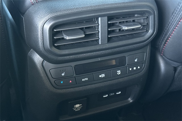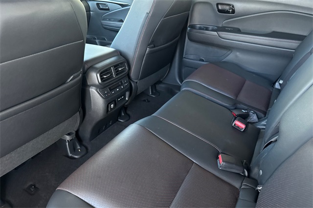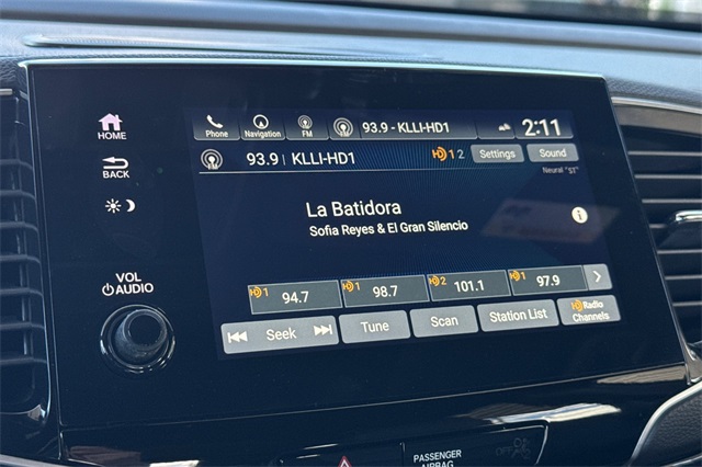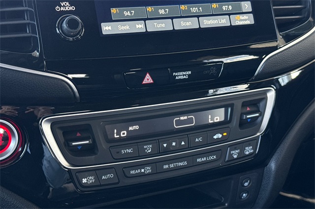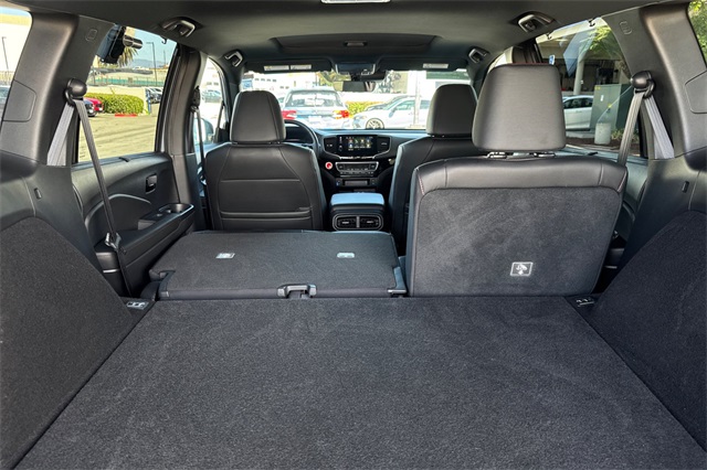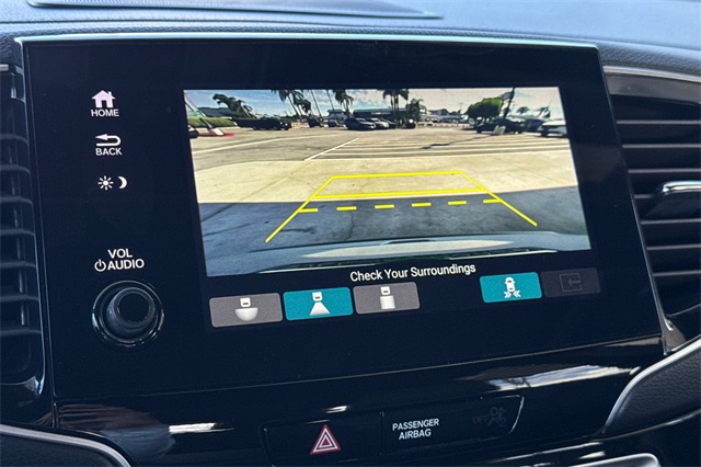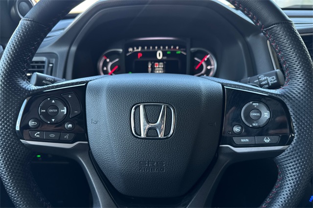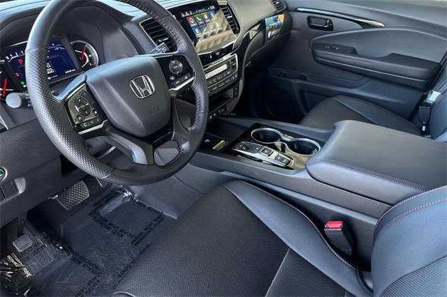 Certified. This is a top of the line 2024 Honda Passport Black Edition with ALL WHEEL DRIVE. It's powered by a 3.5L i-VTEC V6 with a 9-Speed Automatic. It's Sonic Gray Pearl with Black leather seat trim, and it's equipped with 20" alloy wheels, a power moonroof and hands-free power tailgate. It's got a 540W premium sound system with a navigation system that has HD real time traffic info, Apple Carplay and Android Auto capability, a 110V power outlet, the blind spot info system, adaptive cruise control, lane keeping assist, forward collision warning & braking, dark privacy glass, 3 zone air conditioning, heated, vented and powered front seats ( with a memory for the driver), even heated 2nd row seats, front & rear parking sensors, wireless phone charging, and a split fold down rear seat that gives you tons of storage space.