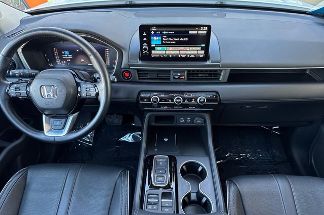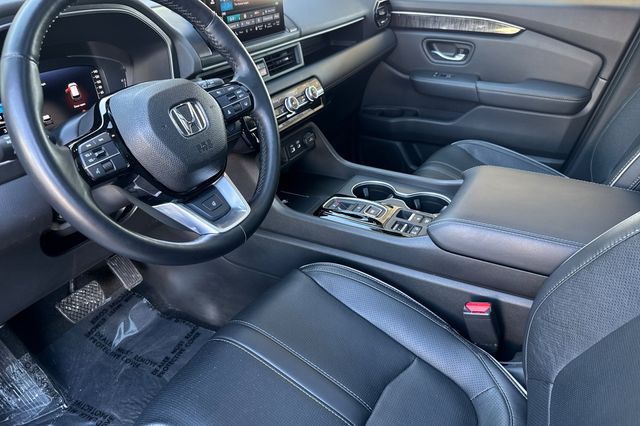 Certified.2024 Honda Pilot Elite. It's powered by the 285HP 3.5L V6 with 10-speed automatic transmission and intelligent 4WD. It's Platinum White Pearl outside with Black leather on the inside. The front captain's chairs are heated and ventilated with power adjustment, the second-row outboard seats are also heated. There's a hands-free power tailgate, panoramic moonroof with power sunshade, remote engine start, and wireless phone charging pad. The Elite package includes a BOSE 12-speaker premium audio system with wireless Apple CarPlay and Android Auto, tri-zone automatic climate control, and heated steering wheel. Honda Sensing safety suite features adaptive cruise control, collision mitigation braking, lane keeping assist, and road departure mitigation. Additional tech includes blind spot monitoring, cross traffic monitor, and the Cabin-Talk PA system so you can speak clearly to your kids in back. 31,235 miles, $45,988. Contact Freeway Honda to schedule your test drive.